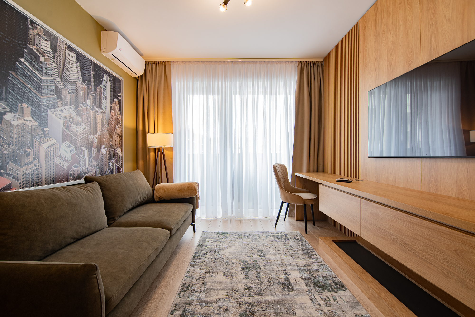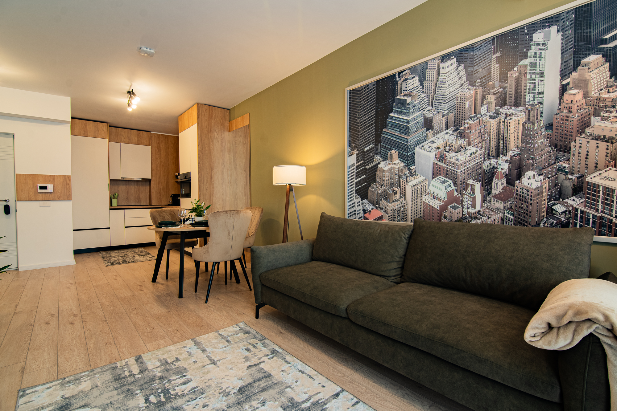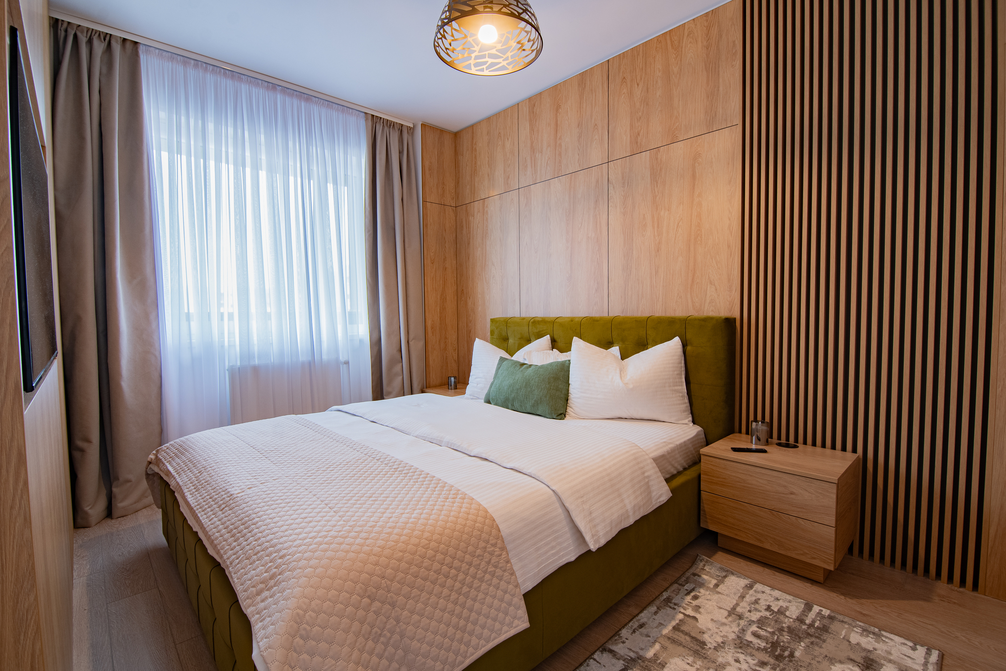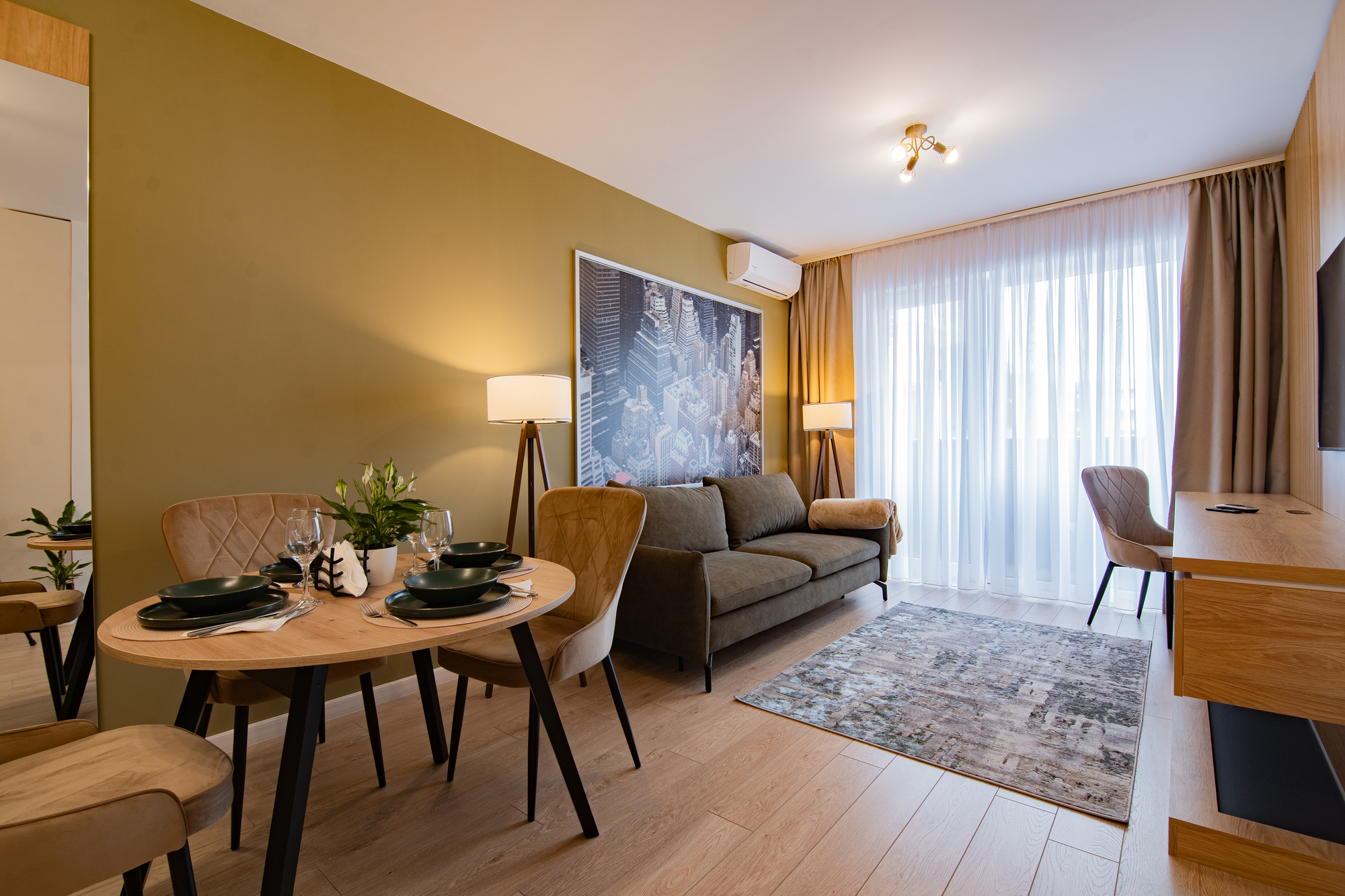 I stayed 2 nights and it was very nice! Everything looks new, tastefully done apartment, warm and fully equipped. The hosts are very kind and prompt in communication. The apartment is located next to a shopping complex with many shops (including Piața 9). Another good thing, they also offered us underground parking which was a plus for the winter period.